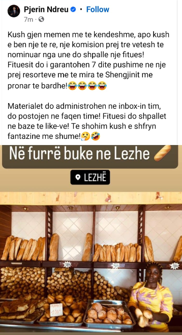 Shkak për hapjen e këtij konkursi janë bërë emigrantët në qytetin e Lezhës, ku vet Pjerin Ndreu ka postuar një foto, ku duket një emigrante me ngjyrë, e cila punon në një furrë buke në Lezhë.