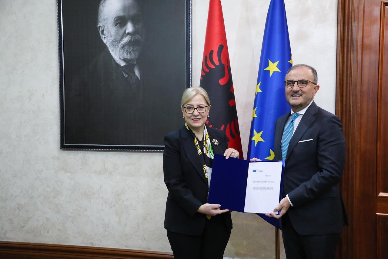 Ambasadori i BE, Luigi Soreca, i dorëzoi sot Kryetares së Kuvendit, Lindita Nikolla Raportin e KE të vitit 2023 për Shqipërinë.