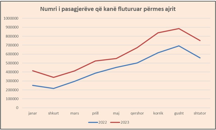 5.4 milionë pasagjerë kanë fluturuar në 9 janar-shtator 2023