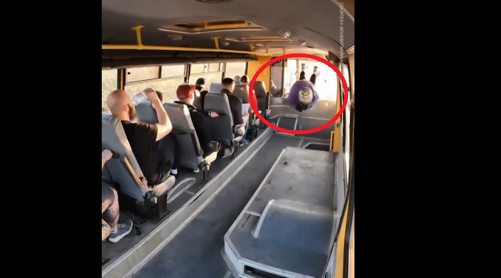 Ai kërceu nëpër xhamin e përparmë të një autobusi në lëvizje, përmes korridorit dhe nga dritarja e pasme.
