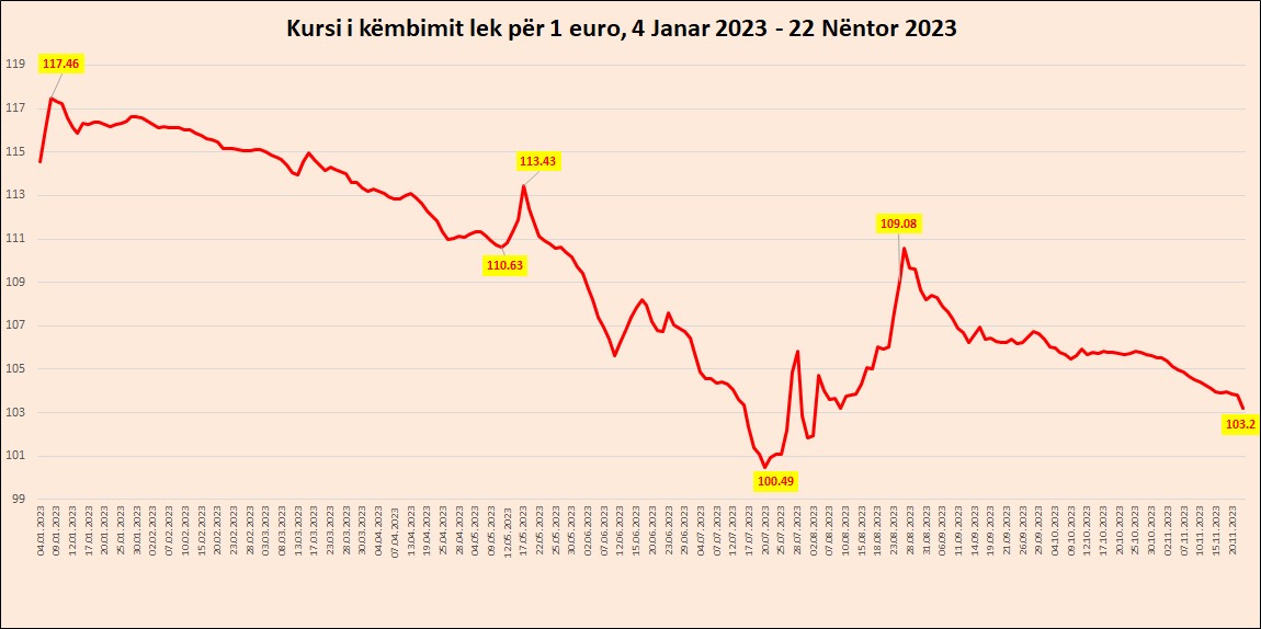 Qysh prej javës së fundit të muajit tetor, kursi Euro-Lek nisi një cikël gradual rënieje, që e ka ulur tashme në nivele të përafërta me sezonin veror, kur tradicionalisht kursi prek vlera të ulëta, për shkak të prurjeve nga turizmi.