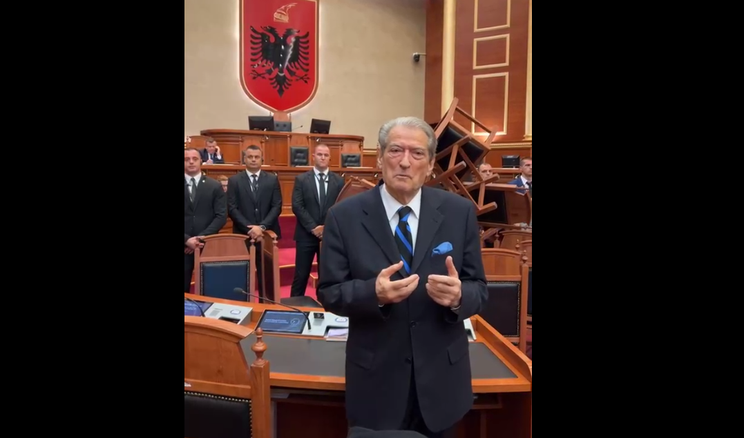 Deputeti demokrat Noka përpiqet t’u vërë flakën karrigeve pas këshillimit me Berishën e Palokën. Ai merr një tufë me letra dhe përpiqet ta hedhë mes karrigeve pp ndalohet nga garda.