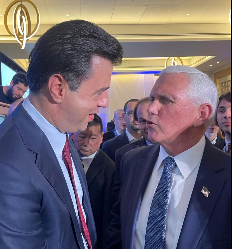 ‘I ftuar nderi në forumin e Unionit Ndërkombëtar Demokrat, ishte sot ish-zëvendës Presidenti i SHBA-së Mike Pence. Kënaqësi të bisedoja me të dhe të ndaja mirënjohjen e madhe që çdo shqiptar ka për mbështetjen e jashtëzakonshme që SHBA i ka dhënë dhe i jep kombit shqiptar. Me ndihmën dhe mbështetjen e SHBA-së, ne do t’ja dalim të ndryshojmë Shqipërinë dhe të mbrojmë interesat e shqiptarëve kudo ku ata jetojnë. Të bekuar me miqësinë e SHBA-ve, të cilën duhet ta mbrojmë dhe forcojmë edhe më tej.’- shkruan Basha.