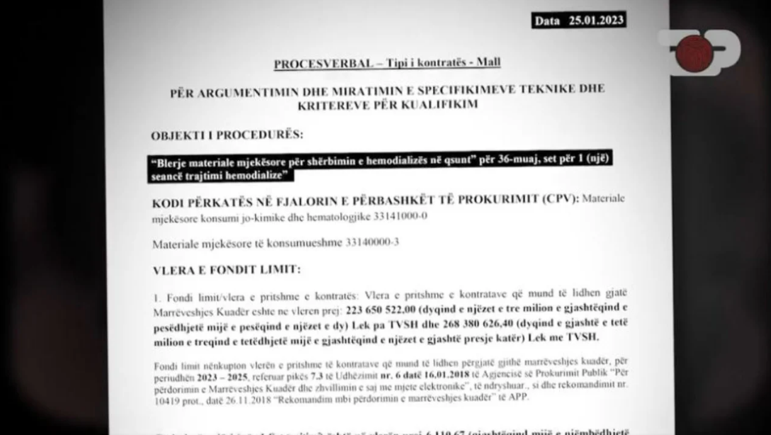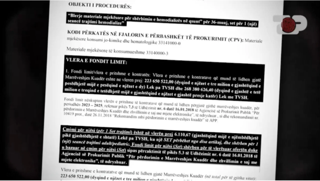 Fondi ishte 224 milionë lekë për 36 muaj. Në dokumentet e tenderit zbulohet se një set trajtimi është në vlerën rreth 6 mijë e 100 lekë.