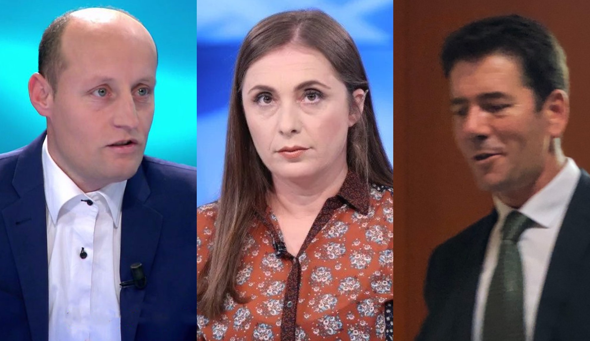 Majtas gazetari Elton Qyno, në mesa gazetarja Anila Hoxha, djathtas prokurori Behar Dibra