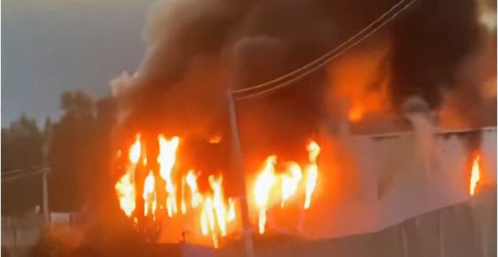 Një fabrikë vaji në Vaqarr të Tiranës është përfshirë nga flakët pasditen e kësaj të hënë.