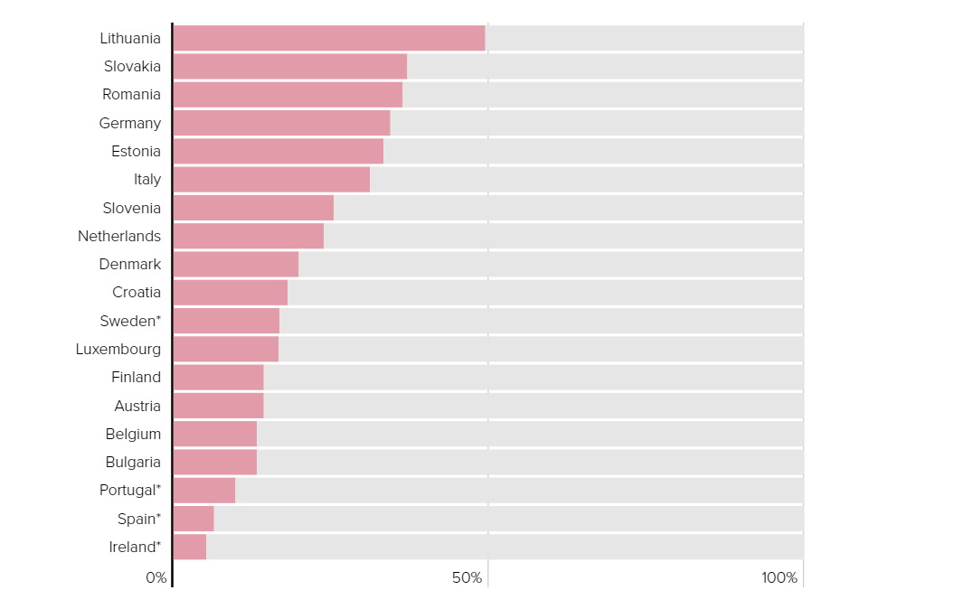 Llogaritjet e bazuara në të dhënat e disponueshme tregojnë se vendet e BE-së kanë hedhur një mesatare prej 0,7 vaksinash për çdo anëtar të popullsisë së tyre. Në krye të shkallës është Estonia, e cila ka hedhur më shumë se një dozë për banor, e ndjekur nga afër nga Gjermania, e cila gjithashtu ka hedhur poshtë vëllimin më të madh të papërpunuar.