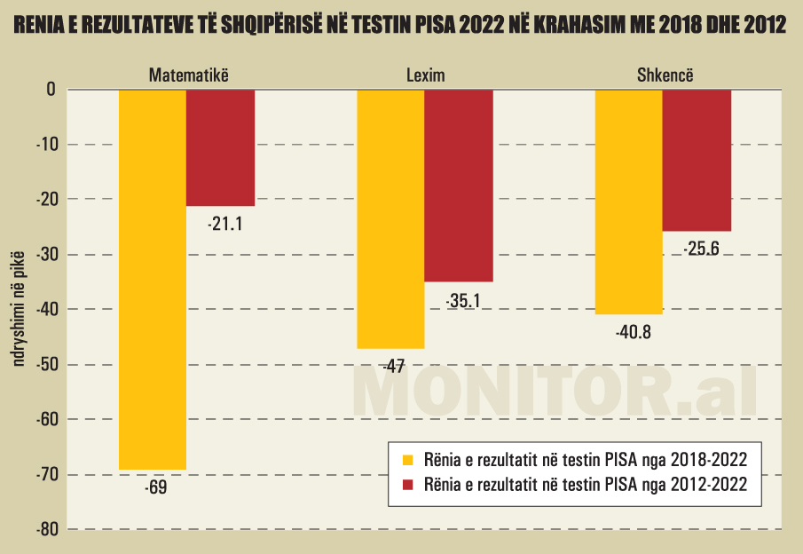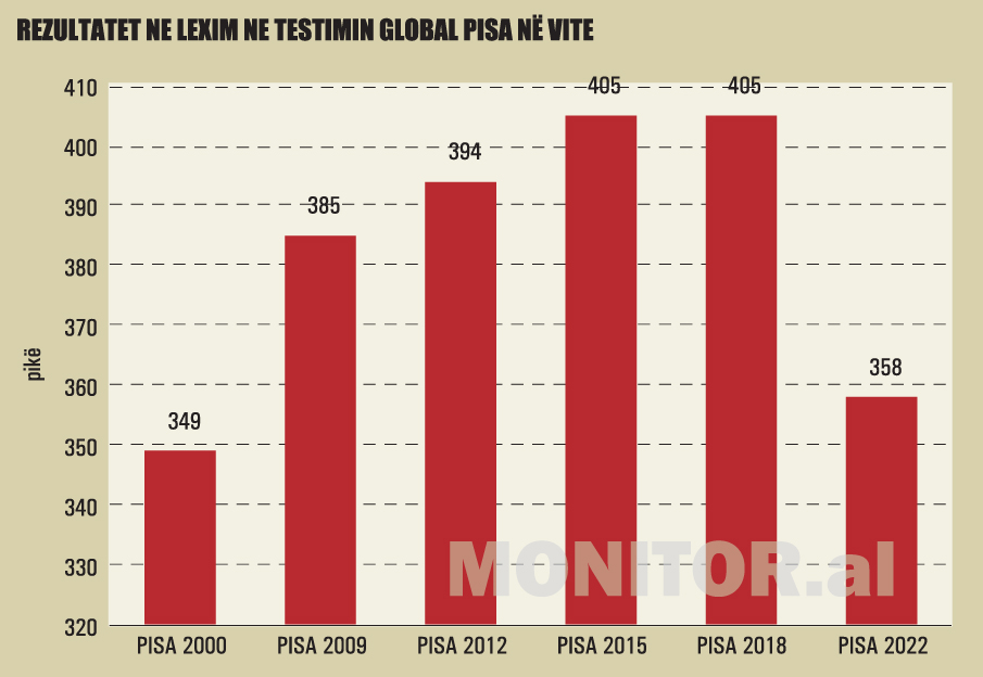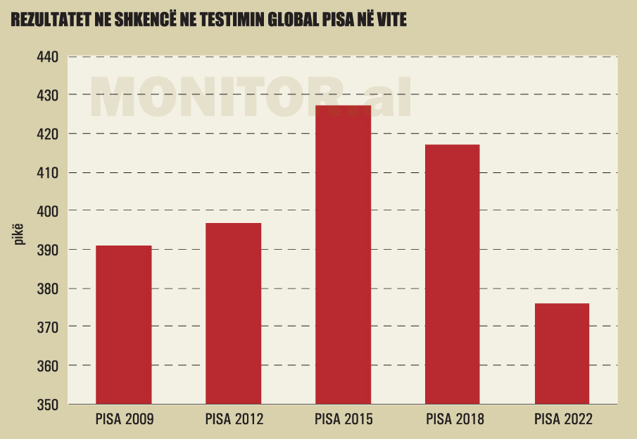 Shqipëria ka bërë dy dekada pas në sektorin e arsimit, sipas testimit të kryer në vitin 2022 me nxënësit 15-vjeçarë. Në matematikë, ata morën 368 pikë, 69 pikë më pak se në testin e 2018 dhe 21 pikë më pak se më 2012.