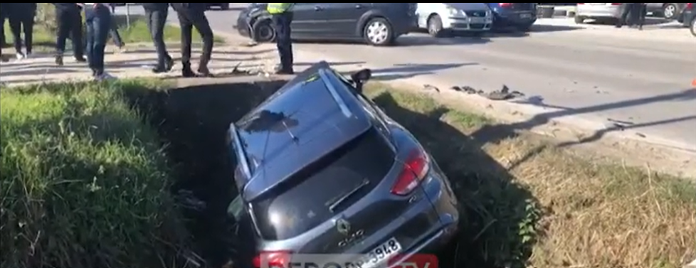 Nga pamjet e siguruara duket se përplasja ka qenë e fortë, duke bërë që automjeteti tip “Renaul Clio” të bjerë në një kanal aty pranë.