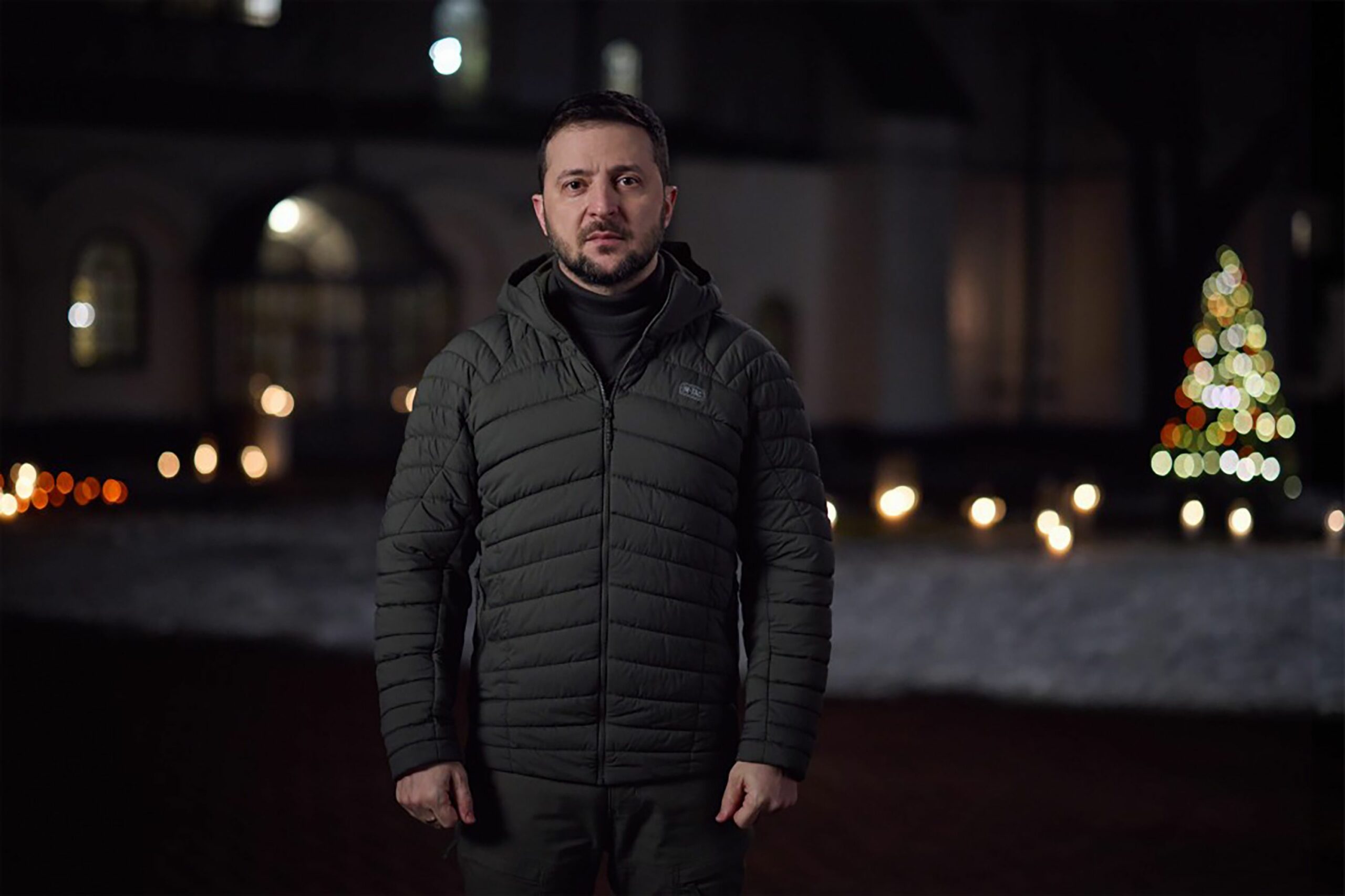 Në natën e Krishtlindjes, më 24 vjetor, zoti Zelensky iu drejtua kombit me një video të filmuar para Katedrales së ndriçuar Shën Sofisë në qendër të Kievit.