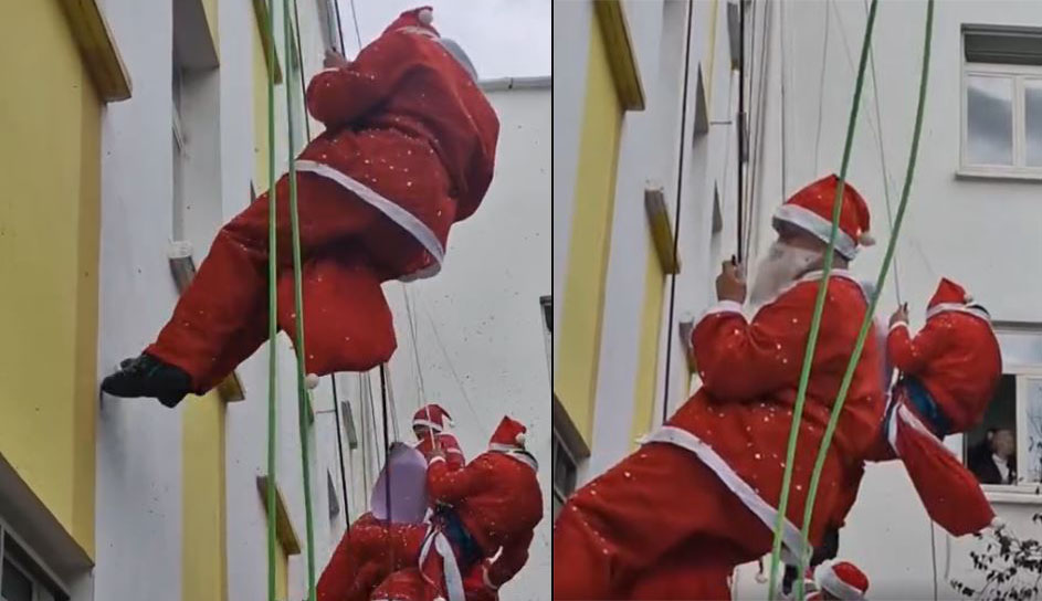 Të veshur me kostumin e Babagjyshit, ata realizuan zbritje me litarë dhe u dhuruan fëmijëve dhurata nga dritarja.