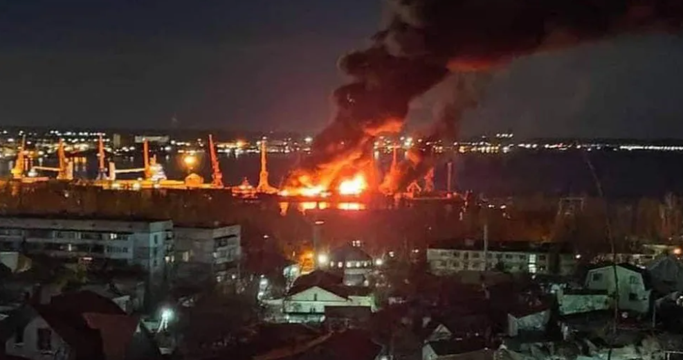 Pamjet që supozohet se tregojnë një shpërthim të madh në port u shpërndanë nga komandanti i forcave ajrore ukrainase, gjenerallejtënant Mykola Oleshchuk.