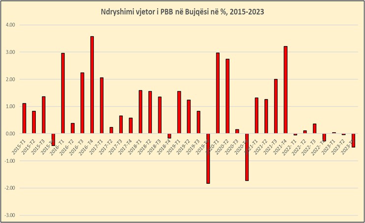 Të dhënat zyrtare të INSTAT tregojnë se, në tremujorin e tretë të këtij viti, prodhimi në sektorin bujqësor shënoi rënie me 0.4%, kjo ishte rënia më e madhe që nga tremujori i katërt 2021 ku moti i keq dëmtoi prodhimin e sezonit.