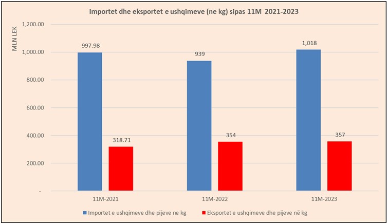 Gjatë 11 -mujorit importet e ushqimeve ishin 2.8 herë më të larta se eksportet, teksa në të njëjtën periudhe të vitit 2022 ky raport ishte 2.6%.