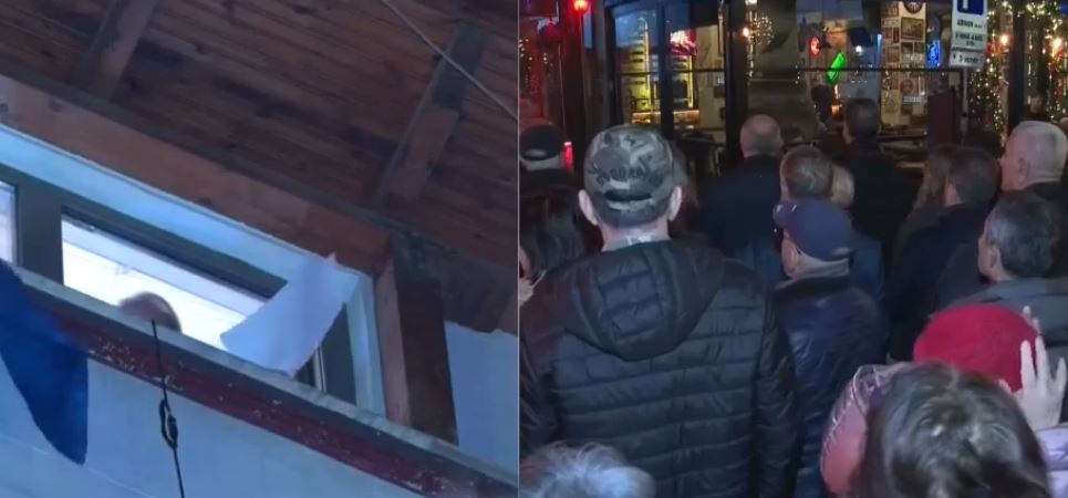 Ndërsa dhjetëra mbështetës të tij janë mbledhur poshtë banesës, ish-kryeministri Sali Berisha ka dalë në dritare dhe i ka përshëndetur ata.