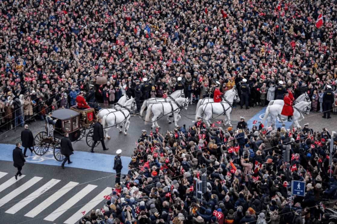 Margrethe, 83, është monarkja e parë daneze që ka hequr dorë vullnetarisht nga froni në gati 900 vjet. Shumë mijëra njerëz u mblodhën jashtë pallatit ku po zhvillohej ceremonia mbretërore e fronëzimit.