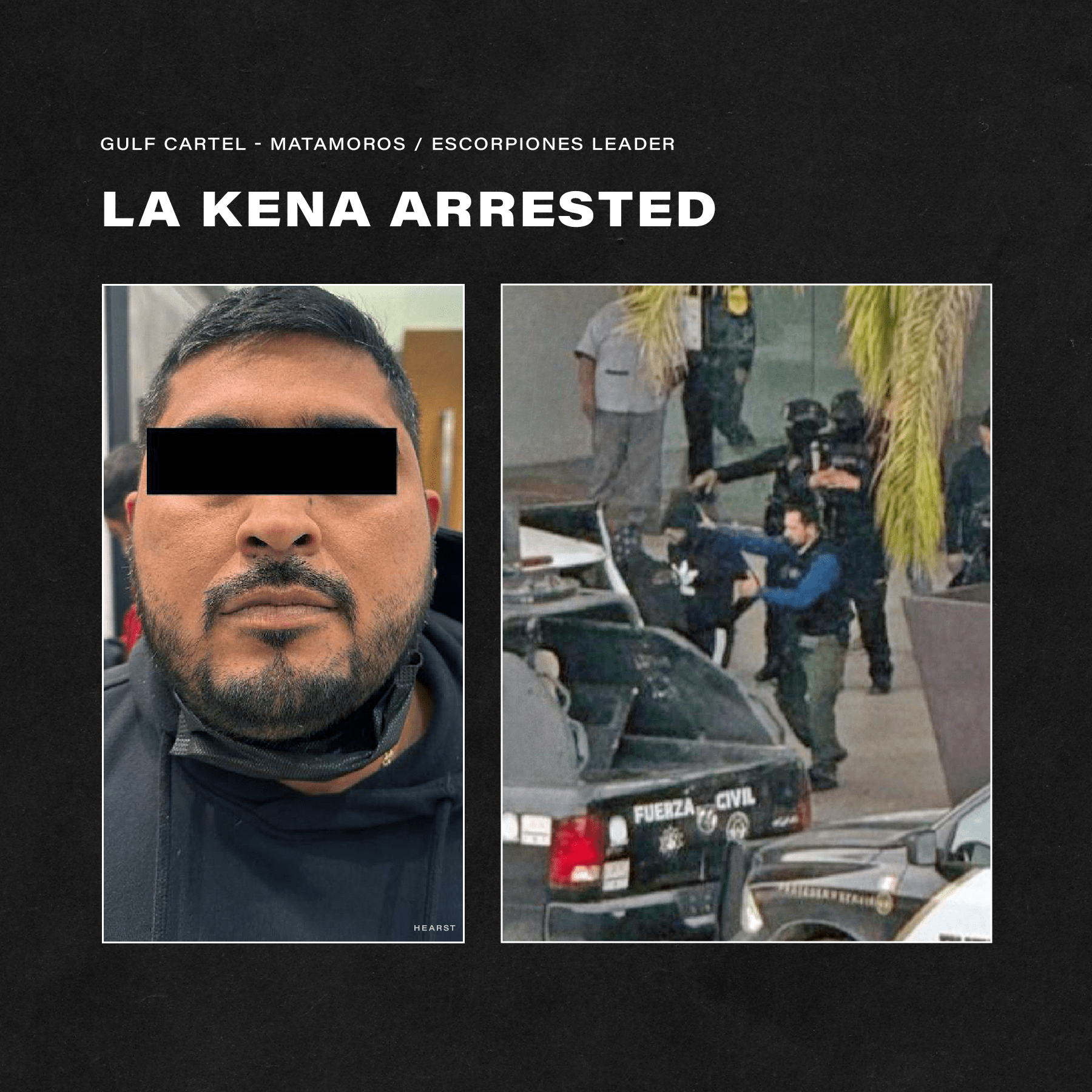 Në shtator të vitit 2023, La Kena iu shmang arrestimit në Matamoros kur forcat e sigurisë rrethuan një nga shtëpitë e tij në lagjen Valle de los Reyes.