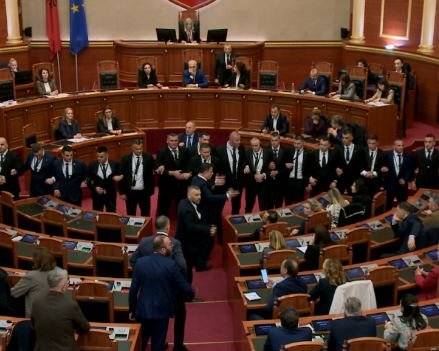 Kryeparlamentarja Lindita Nikolla ka replikuar me disa prej deputetëve të opozitës të cilët edhe pse të përjashtuar kanë arritur të hyjnë në sallën e parlamentit.