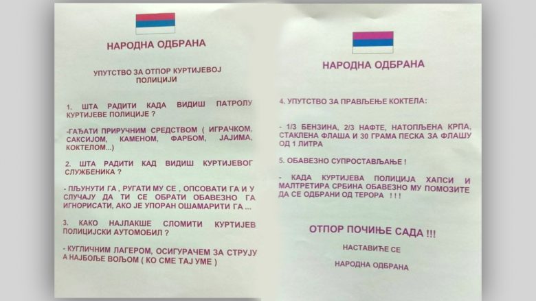 Në veri të Kosovës, një grup i quajtur “Mbrojtja Popullore”, ka nisur shpërndajen e fletushkave që nxisin qytetarët sebë të mos binden ndaj Policisë së Kosovës.