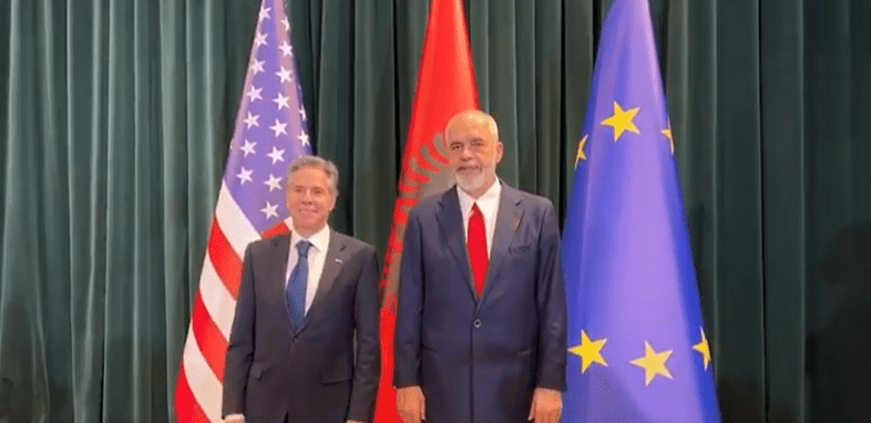 Ora 16:15 Sekretari Blinken takohet me kryeministrin shqiptar Edi Rama në Tiranë, Shqipëri.