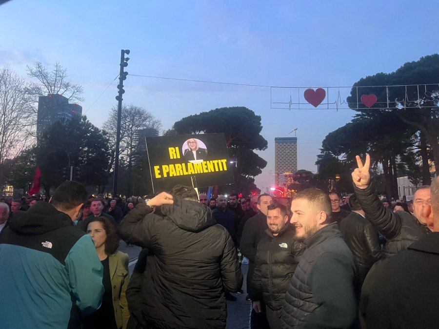 Kreu i Rithemelimit foli përpara mbështetësve dhe qytetarëve të mbledhur në Bulevardin Dëshmorët e kombit nëpërmjet ekranit.