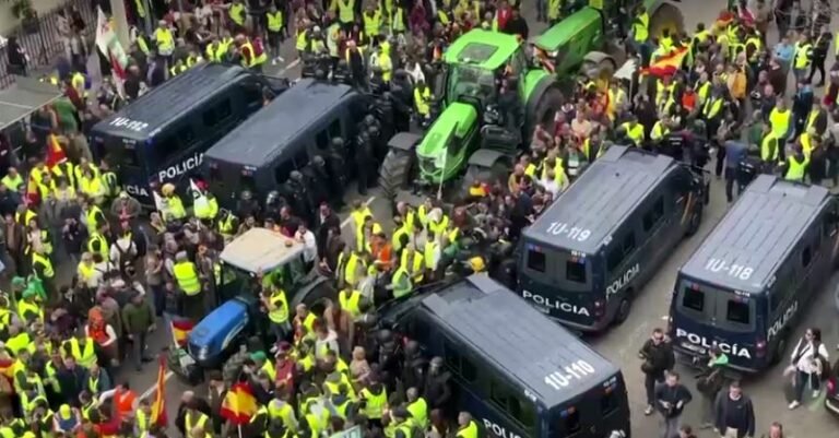 Sapo mbërritën traktorët, pati përleshje me policinë ndërsa fermerët u përpoqën të marshonin përgjatë rrugës “Alcala”, një rrugë e ndryshme nga ajo e planifikuar fillimisht.