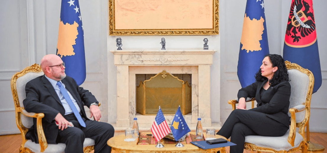 Presidentja e Kosovës, Vjosa Osmani, tha se me ambasadorin amerikan në Kosovë, Jeffrey Hovenier, ka diskutuar për propozimet, që sipas saj, ofrojnë “një zgjidhje të qëndrueshme për planin e trazicionit për zbatimin e rregullores së Bankës Qendrore të Kosovës”.