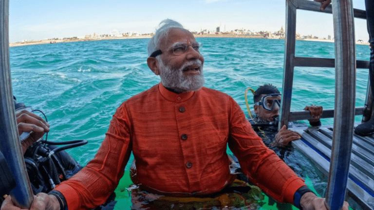 Kryeministri i Indisë Narendra Modi shkoi në një pelegrinazh nënujor në një pjesë të zhytur në ujë të qytetit të Dwarka, që ndodhet në bregun perëndimor të Indisë në shtetin e Gujarat të dielën. Qyteti antik besohet të jetë i lidhur ngushtë me hyjninë hindu Krishna.