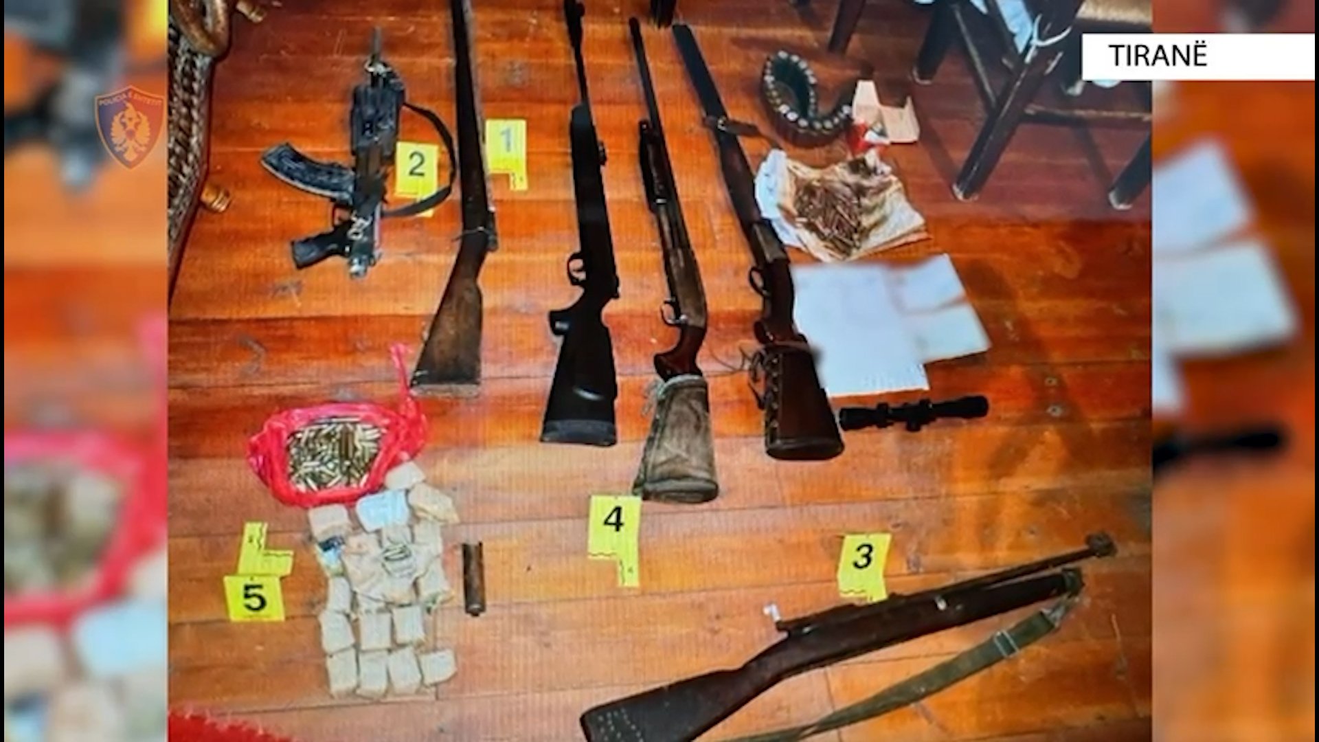 Përveç armëve, janë zbuluar edhe municion luftarak, dhe dy targa të ndryshme.