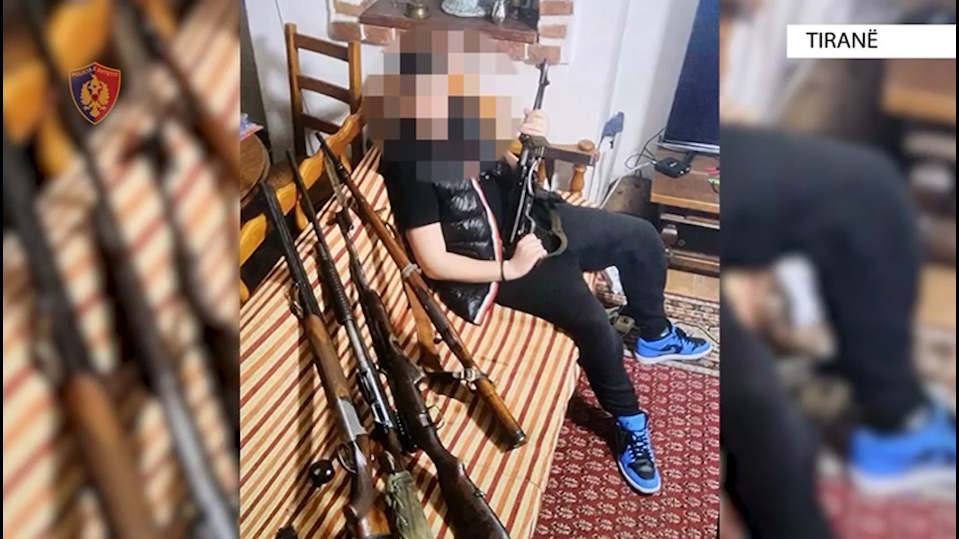 Pas disa informacioneve të siguruara nga Policia se një 16-vjeçar dyshohej se shkonte në shkollë duke mbajtur thika me vete gjatë orëve mësimore, uniformat blu, gjatë kontrolleve në banesën e tij gjetwn dhe sekuestruan një arsenal armësh të ndryshme, përfshirë pushka, shotgun, armë sportive dhe armë gjysmë-automatike.