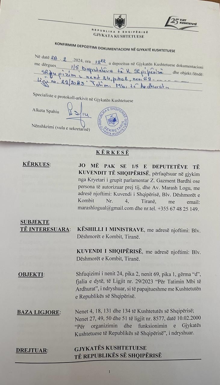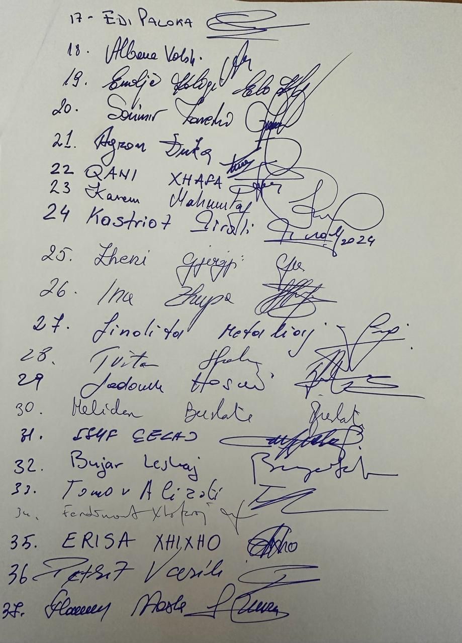 Ndërkohë në foto shihet edhe dokumenti me firmat e deputetëve që kanë depozituar padinë.