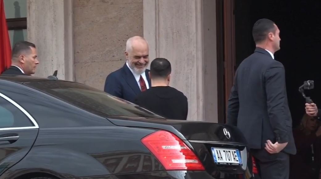 Presidenti i Ukrainës Volodymyr Zelensky ka mbërritur në Kryeministri, ku u prit nga kreu i qeverisë Edi Rama.