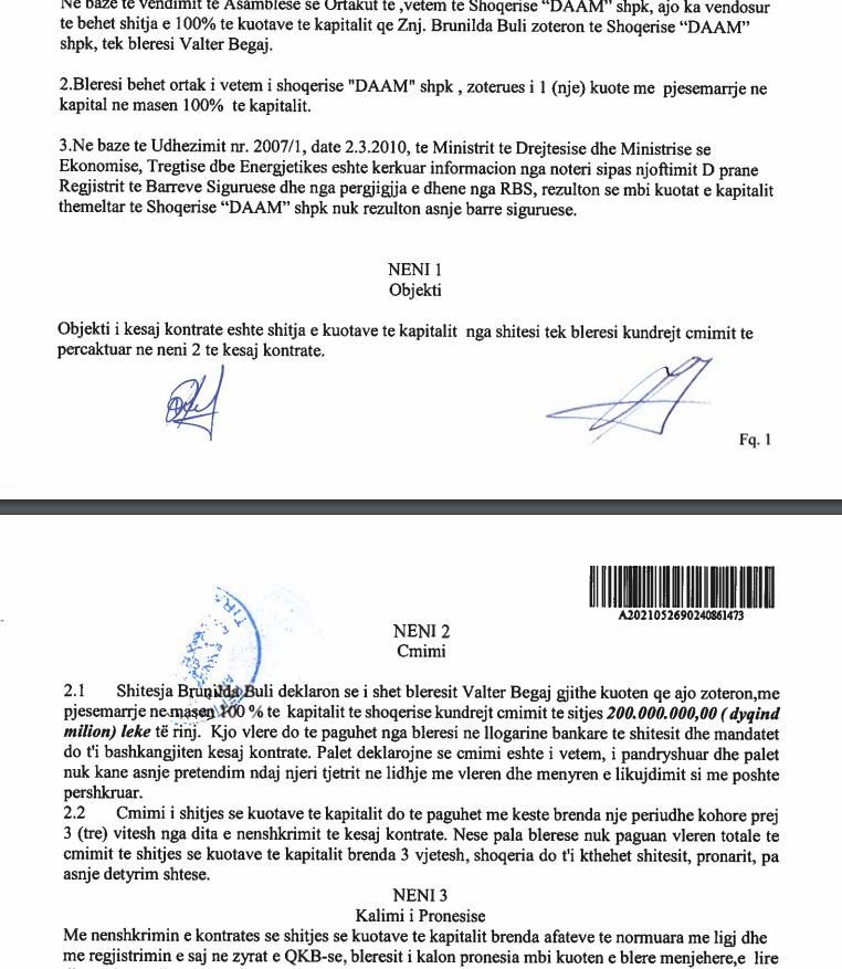 Një muaj më vonë, Ervis Lame ia shet sërish kompaninë DAAM Valter Begajt me vlerë zero lekë.