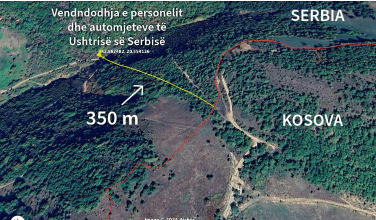 Sipas njehsorit, që është pjesë e veglës Google Maps, në momentin e videos, dy automjete dhe disa ushtarë ndodhen rreth 350 metra nga kufiri me Kosovën, sipas vijës ajrore.