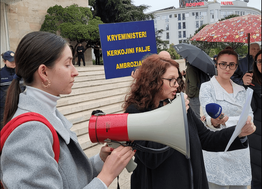 Gazetarë dhe aktivistë u mblodhën sot para Kryeministrisë në një protestë kundër sjelljes së të kreut të qeverisë, Edi Rama, ndaj gazetares Ambrozia Meta, si dhe për kërcënimet ndaj gazetarëve Ola Xama dhe Isa Myzyraj.