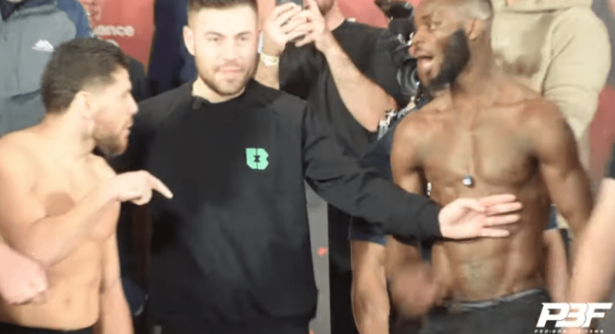 Në daljen e fundit zyrtare, atë zhvilluar pak minuta më parë, gjatë peshimeve zyrtare, dy boksierët janë përplasur mes tyre.