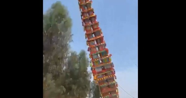 Struktura me rrota 37 metra e lartë po transportohej si pjesë e panairit të tempullit Husur Madaramma, që tërheq mijëra besimtarë nga fshatrat e afërt për procesionin e tij vjetor me qerre në Indi.