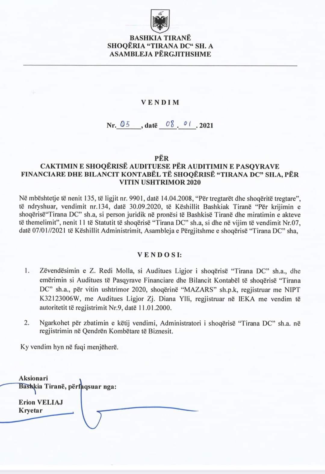 Në kompanitë private me përgjegjësi të kufizuar, është administratori ai që zgjedh audituesin e kompanisë, por në kompani me pjesëmarrje shtetërore ose sh.a., është rreptësisht e ndaluar që administratori, në këtë rast drejtori në bashki Redi Molla të zgjedhë audituesin, pasi ka paketë aksionerësh dhe është Këshilli Mbikëqyrës ai që zgjedh audituesin.