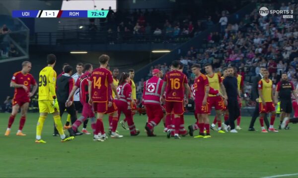 Sfida mes Udineses dhe Romës u ndërpre shkaku i një shqetësimi serioz që pësoi lojtari roman, Evan Ndicka gjatë ndeshjes.