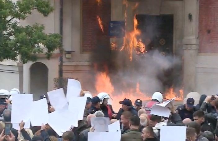 Situata u tensionua para Bashkisë së Tiranës, atje ku po mbahet protesta e opozitës. Protestuesit kanë hedhur flakadanë dhe molotov, duke shkaktuar një zjarr të madh në hyrje të bashkisë.