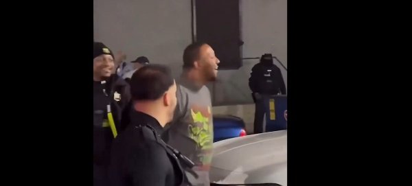 Në videon e shpërndarë efektivi që e prangos shihet duke qeshur teksa e shoqëron në makinë.
