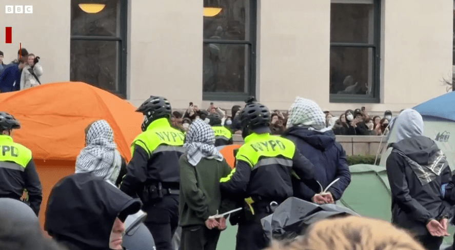 Lëvizja protestuese u vu në qendër të vëmendjes javën e kaluar pasi policia e qytetit të Nju Jorkut u thirr në kampusin e Kolumbisë dhe arrestoi më shumë se 100 demonstrues.