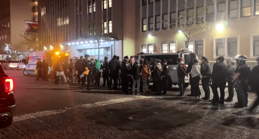 Në nisje të aksionit policor rreth orës 21:00. Turma të ET të policisë me helmeta marshuan në kampusin elitar në Manhatanin e sipërm, një pikë qendrore e mitingjeve të studentëve që janë përhapur në dhjetëra shkolla në të gjithë SHBA ditët e fundit duke shprehur kundërshtimin ndaj luftës së Izraelit në Gaza.