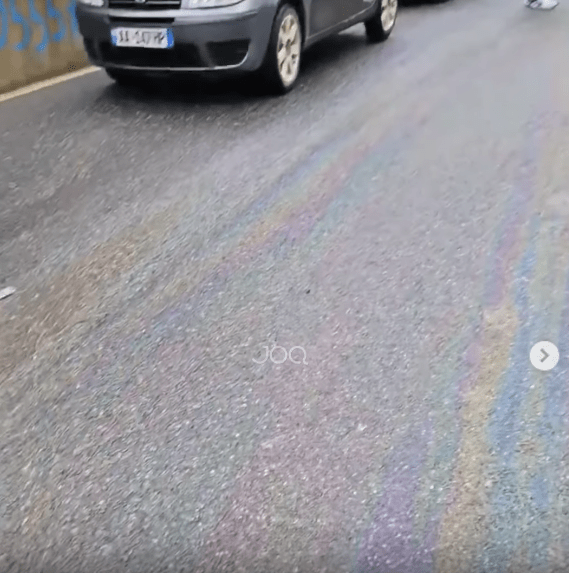 Nga pamjet e një videoje të hedhur nga JOQ duket se në rrugë ka prani të vajit.