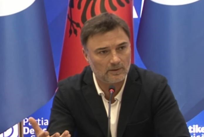 Sekretari i Përgjithshëm i PD, Enkelejd Alibeaj po mban një konferencë për shtyp së bashku me përfaqësuesin ligjor të PD, Rezart Kthupi.