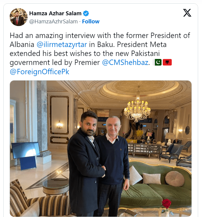 Ish-presidenti i Shqipërisë Ilir Meta ka bërë thirrje për ridimensionimin e marrëdhënieve Pakistan-Shqipëri në një bisedë ekskluzive për The Pakistan Daily.