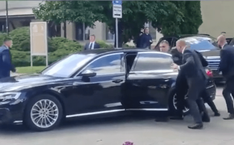 Pamjet nga vendi i ngjarjes treguan kryeministrin e plagosur duke u futur në një automjet nga disa truproja të tij teksa e largojnë me shpejtësi me makinë.