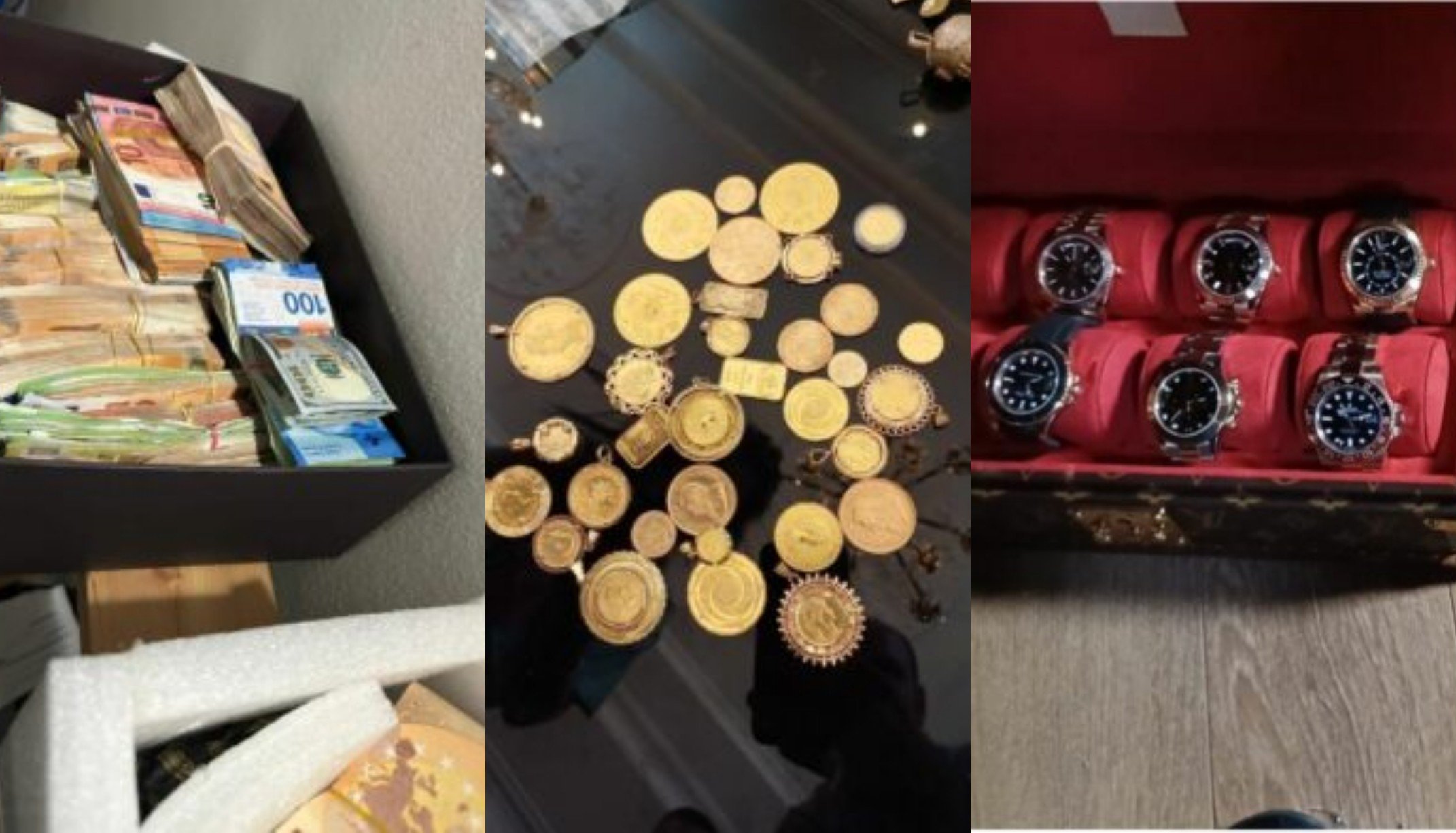 Fotot tregojnë miliona euro, makina të shtrenjta dhe bizhuteri të gjetura në shtëpitë e bosëve të krimit, të cilat janë sekuestruar nga autoritetet.