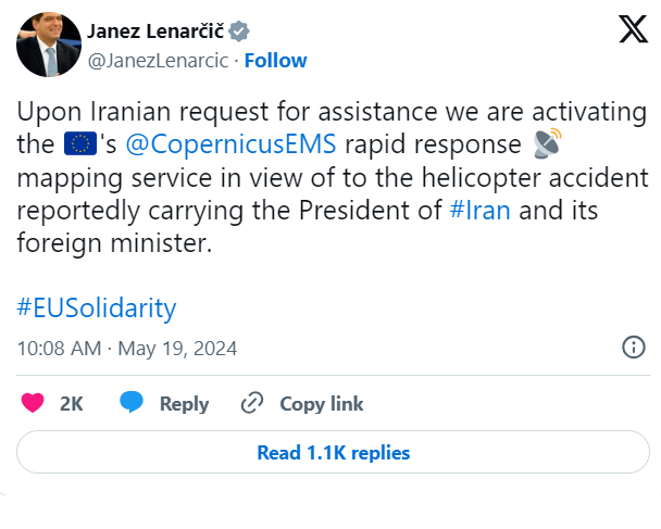 Komisioneri i menaxhimit të krizave Janez Lenarcic tha në X se shërbimi po aktivizonte “shërbimin e tij të hartës së reagimit të shpejtë në funksion të aksidentit të helikopterit”.