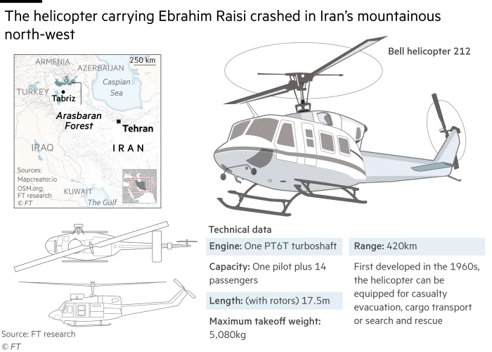 Është e paqartë pse helikopteri i prodhimi amerikan “Bell 212” që po transportonte presidentin dhe ministrin e Jashtëm të Iranit u rrëzua në një shpat mali pranë kufirit me Azerbajxhanin të dielën.